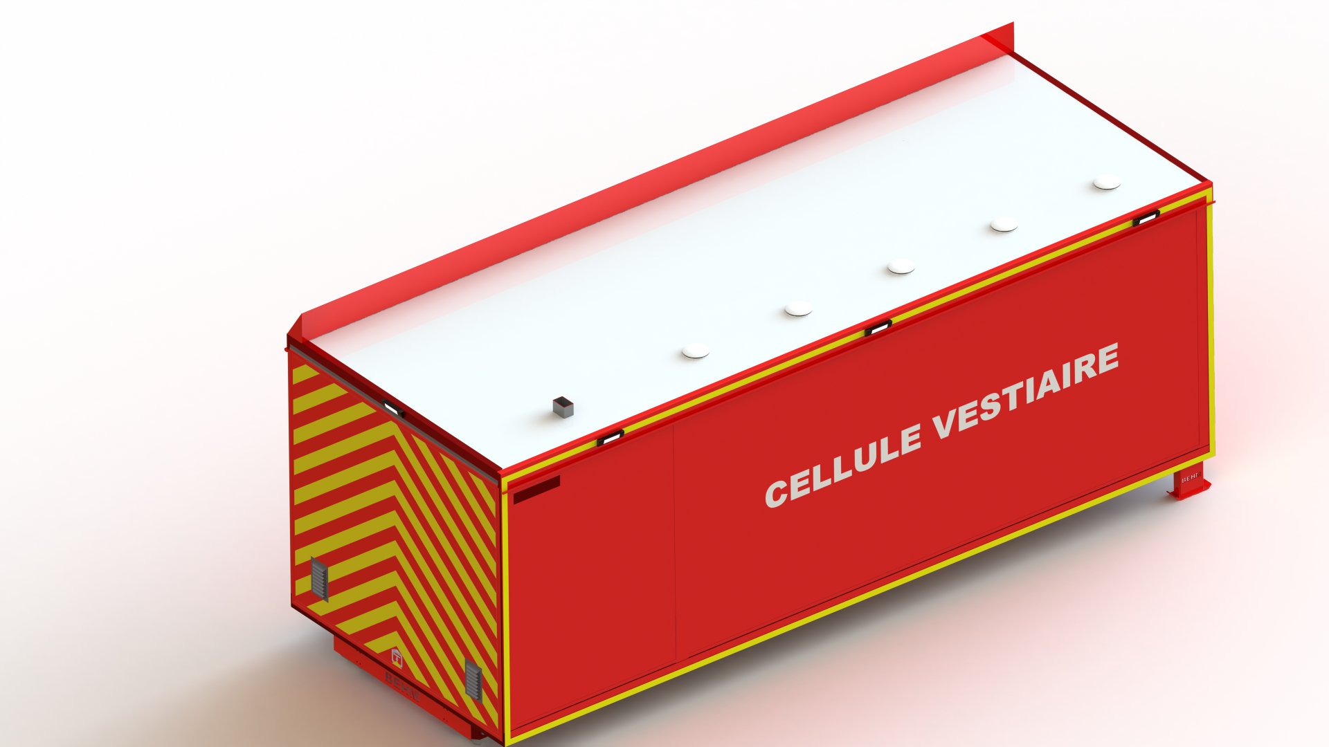 Cette cellule est destiné aux personnels opérationnels afin de se changer, se doucher et se restaurer . Elle dispose pour cela de 3 zones : zone d'entrée , zone de douche, zone dh'abillage. Elle bénéficie d'une autonomie énergétique sur les 5 lignes.